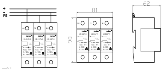 DIN導(dǎo)軌安裝,適用于600~1000V直流電源系統(tǒng)的防雷及過電壓保護。主要用于太陽能光伏發(fā)電系統(tǒng)等的電涌保護,并聯(lián)安裝,不影響原系統(tǒng)的正常工作。