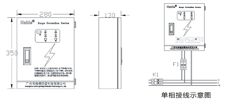 電源相線(L)、零線(N)分別接入電涌保護(hù)器相應(yīng)接線端子,保證牢固及可靠,將避雷器接地端與防雷地線(推薦接地電阻≤4Ω)作良好電氣連接。