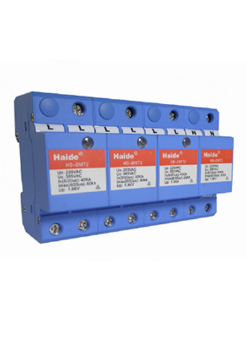 Electric surge protector of low-voltage distribution system is designed according to IEC standard.,having a progressive deterioration function. The discharge channels in the module are connected in parallel and work simultaneously. When any of the channels is damaged, other channels continue to work..Through timely indication of the performance of the product on the module through the flow of deterioration, to facilitate the timely replacement, standard modular installation, integrated lightning protection module.It is with great lightning current discharge capacity, it is suitable for the lightning protection of the building's main power system. The installation of 35mm standard rails is extremely convenient for maintenance. This grade of lightning arrester is connected in parallel to the line, and there is no limit to the power of the downstream equipment.